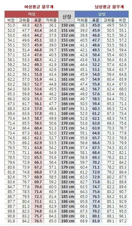 그냥 사랍답게 잘 사는 체중표라는게 있어서