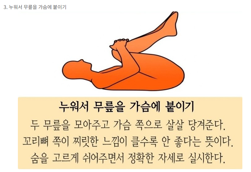 3. 누워서 무릎을 가슴에 붙이기