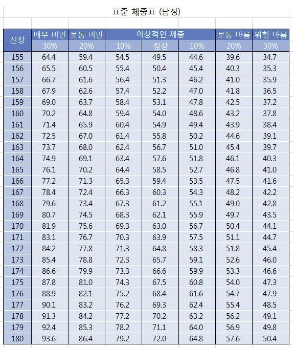 그냥 사랍답게 잘 사는 체중표라는게 있어서