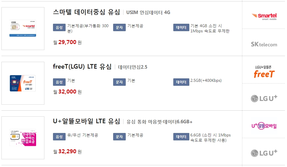 일단 요금을 먼저 찾아보기 전에 제가 찾은 이런 요금제는 순전히 유심만 넣는겁니다. 다시 말해서 나한테 공스마트폰이 있어야합니다.(공기계, 직구한 폰 등만 가능합니다.)